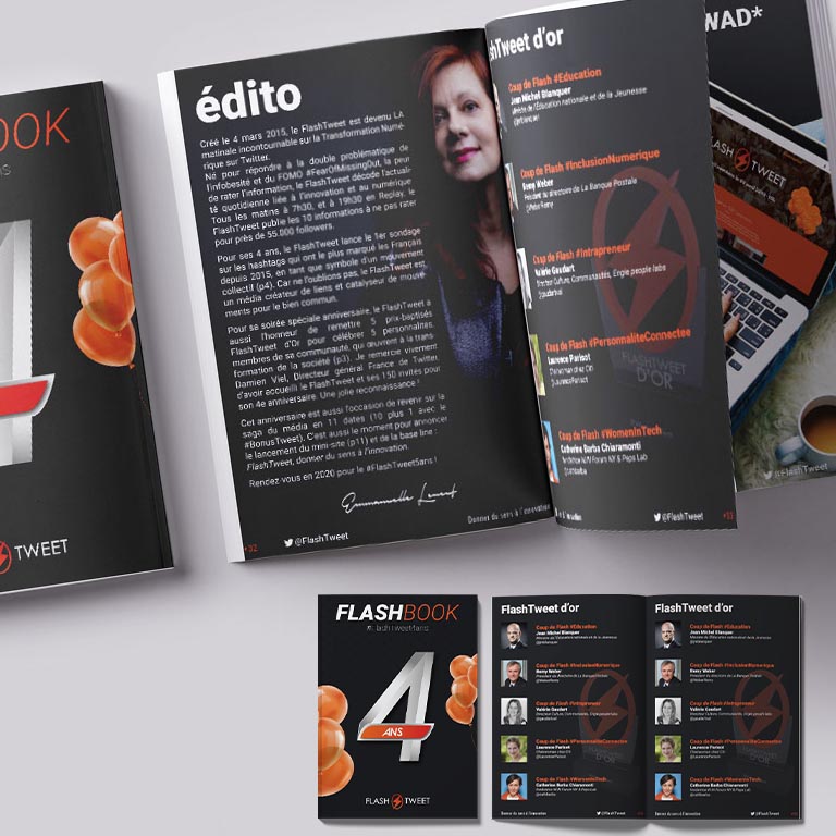 Réalisation du magazine anniversaire des 4 ans du média Flashtweet en partenariat avec Twitter France.